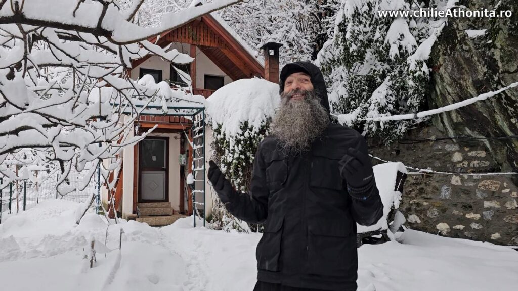 Textul surprinde bucuria primei ninsori în Sfântul Munte Athos, felul în care păsărelele, copacii, chilia și oamenii intră într-o armonie albă, iar părintele Pimen ne învață să vedem în fiecare anotimp un dar plin de dragoste al lui Dumnezeu și al Maicii Domnului.